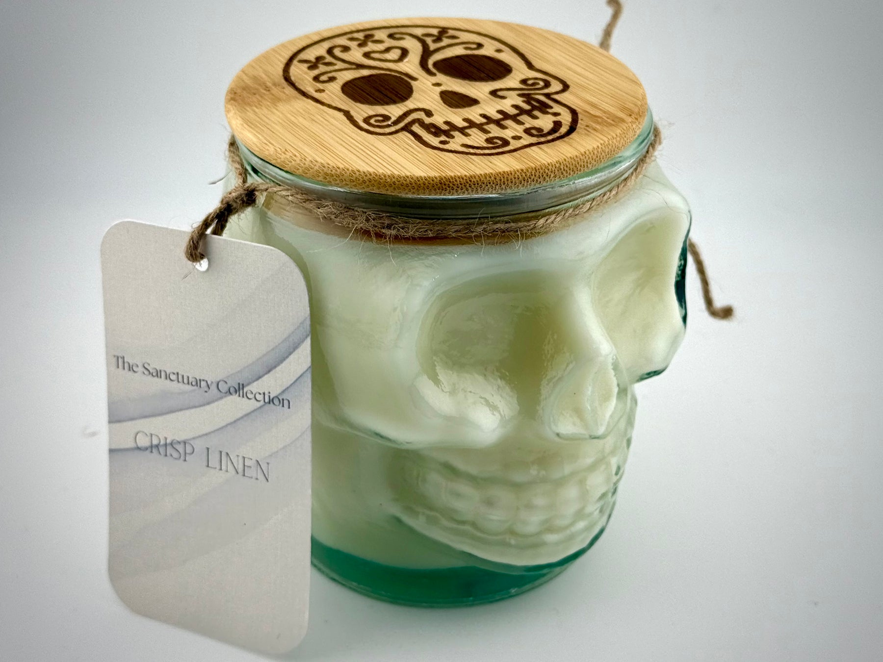 Closure: Natural bamboo lid, laser-engraved with our signature Sugar Skull logo.